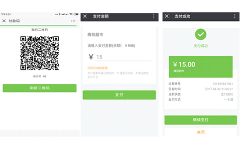 不带实体卡片情况下可以手机扫描商户二维码消费。